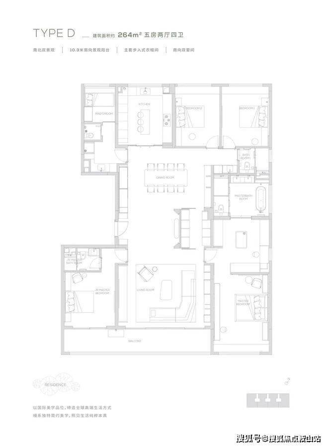 目前在售户型:145㎡三居、174㎡四居、190m²五居和260m²-315㎡五居