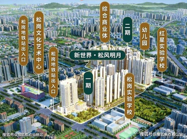 新世界·松风明月坐落于深圳宝安区松岗街道核心区域,精准占据松河北路北侧与沙江路南侧的黄金交汇处,以松岗河为自然分界,分两期匠心打造,总建面约73万㎡,是集品质住宅、商务公寓、社区商业与大型购物中心于一体的综合品质大城 。作为深圳西部发展的重要节点,项目地处粤港澳湾区核心位置,叠加大前海、空港新城、海洋新城与新会展经济圈多重规划辐射,既坐拥成熟的城市生活氛围,又享有不可复制的区域发展红利。周边紧邻松岗文化艺术中心、中海西岸华府等成熟地标,西侧衔接沙涌一村,东侧与松岗实验学校仅一路之隔,南侧依偎松岗河生态廊道,北侧临近地铁口留白地块,地理坐标兼具生态宜居属性与城市核心配套优势,重新定义了松岗生活区的品质标杆。