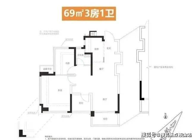 面积:69㎡三房一卫