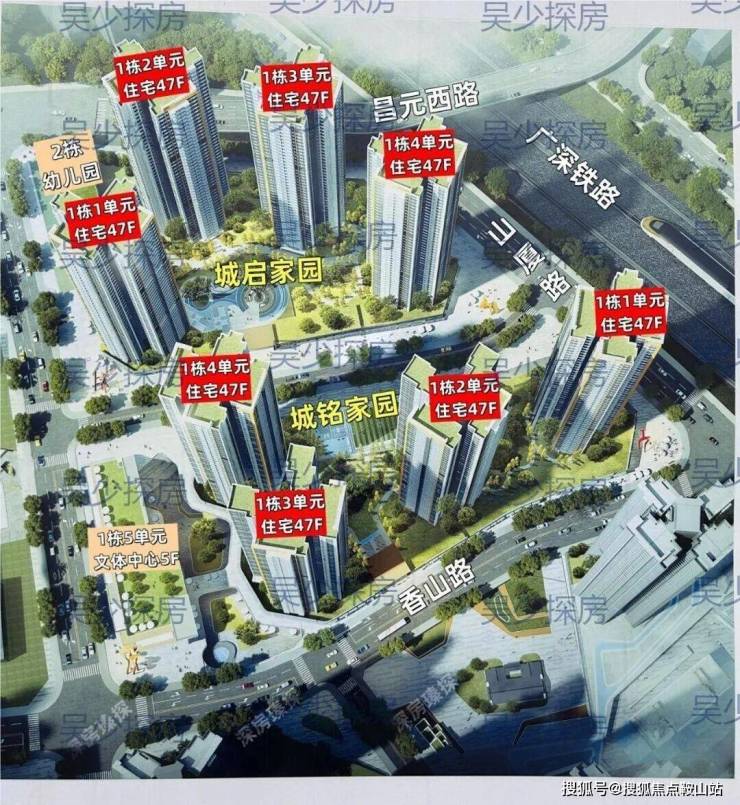 当前首推的远洋城启家园,总占地面积约1.65万㎡,总建筑面积约13.75万㎡,计容建筑面积约10.5万㎡,容积率6.12,绿化率40%,共由4栋47层高的住宅组成,其中1栋1/2/3/4单元住宅47F,2栋是1所9班幼儿园。