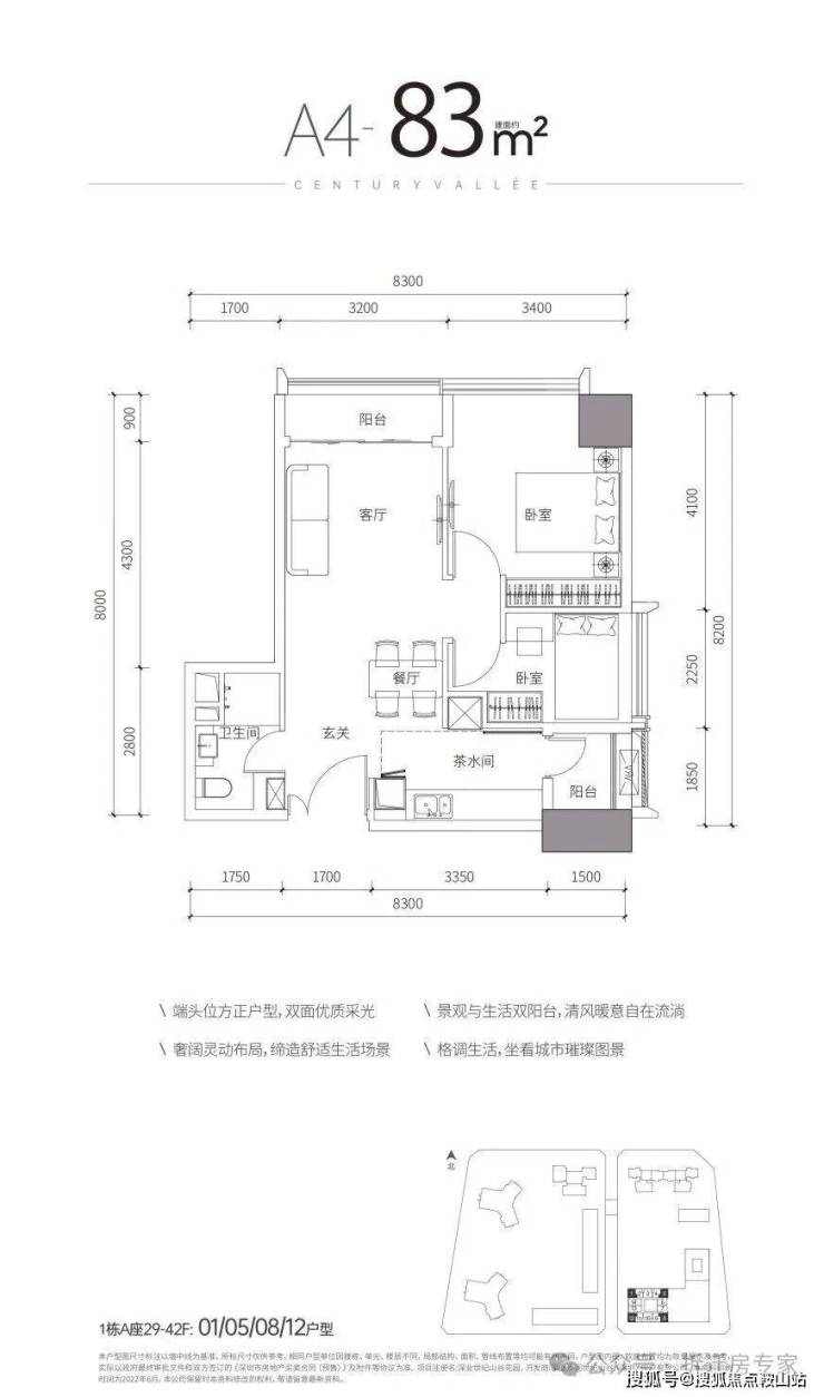 约280㎡4+1房4卫 B户型,西南朝向看城市景观,高层可看深圳湾海景;