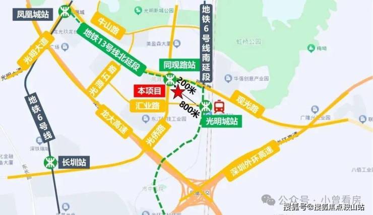 项目距离13号线/6号线支线光明城站1公里;同时也是光明城高铁站,也是广深港高铁线和赣深高铁进入深圳的第一站,周边还邻近观光路,光侨路,深圳外环高速,龙大高速等主要交通要道。
