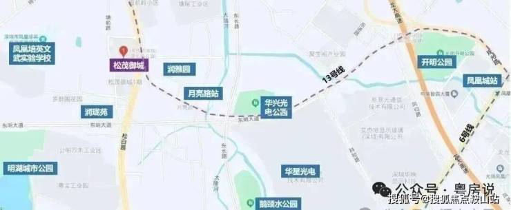 目前距离在建的13号地铁线“月亮路站”约400米,3站到光明城站,5站到石岩上屋站,计划在2025年通车运营。