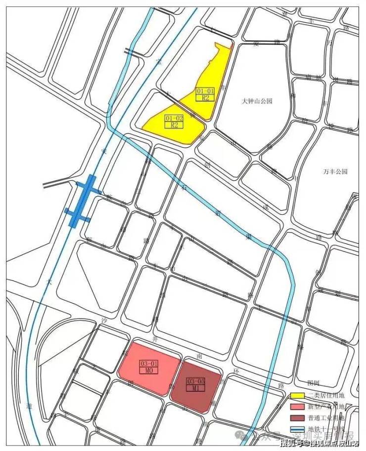 其中北边的01-01、01-02两宗为二类居住用地,即"檀府"项目的两个地块。
