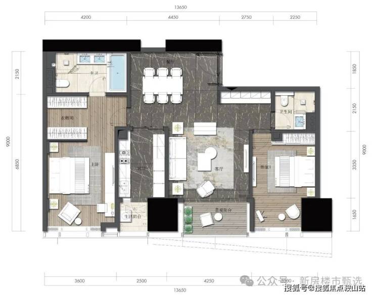 约164㎡2房2厅2卫(独立入户玄关,动静分离,约33㎡豪华主卧,承载品质生活)