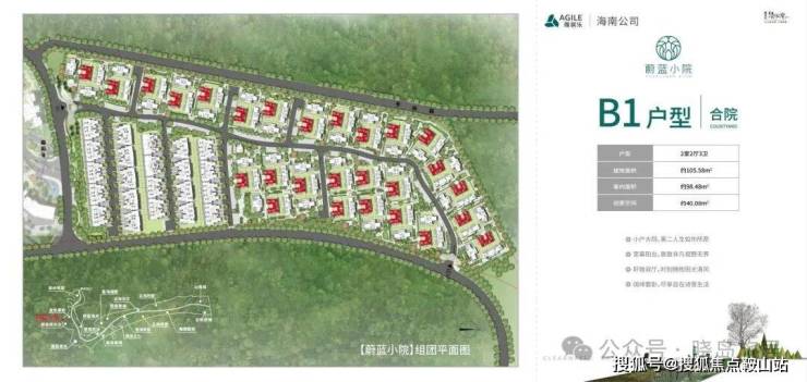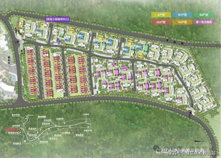 1、项目总规图(红色圈住为“蔚蓝小院”):