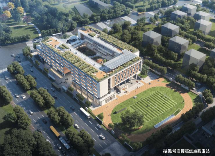 ➤ 在高密度的城市环境中,将操场布置于东侧,留出城市环境透气的空间;以科技感的外立面形象,营造出适应区域性格的校园建筑;设置阅读亭、种植体验、主题剧场,构成多样化的校园活动空间;提供上下学的缓冲区和家长接候区,营造有趣的校园入口。