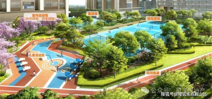 🏀楼下约5900㎡室内外运动共享空间(涵盖运动跑道、羽毛球场、篮球场、儿童运动场等),规划社康中心及老年人日间照料中心,满足全龄段大城生活