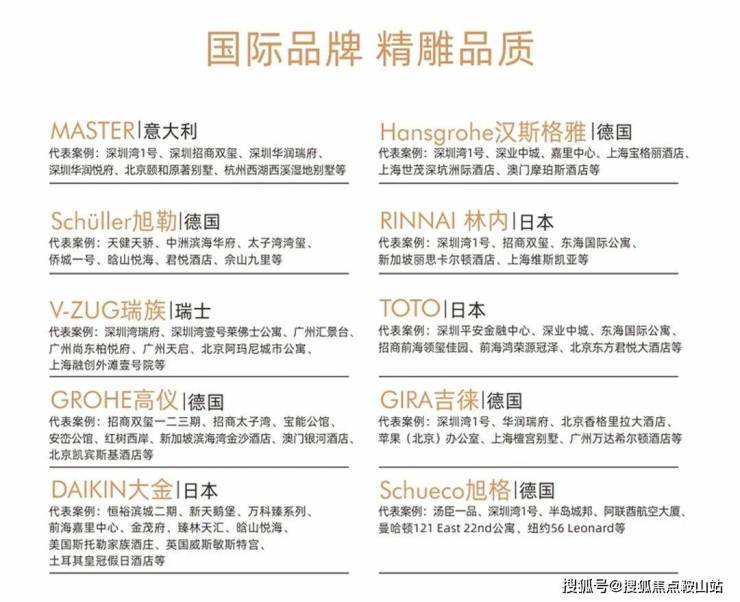 【精工品牌】甄选世界知名精装品牌,引领奢宅标准前沿;例如:瑞族、大金、MASTER、汉斯格雅等国际一线品牌。配备全屋智能化系统,将安全便捷融入生活,满足豪宅的配置要求。