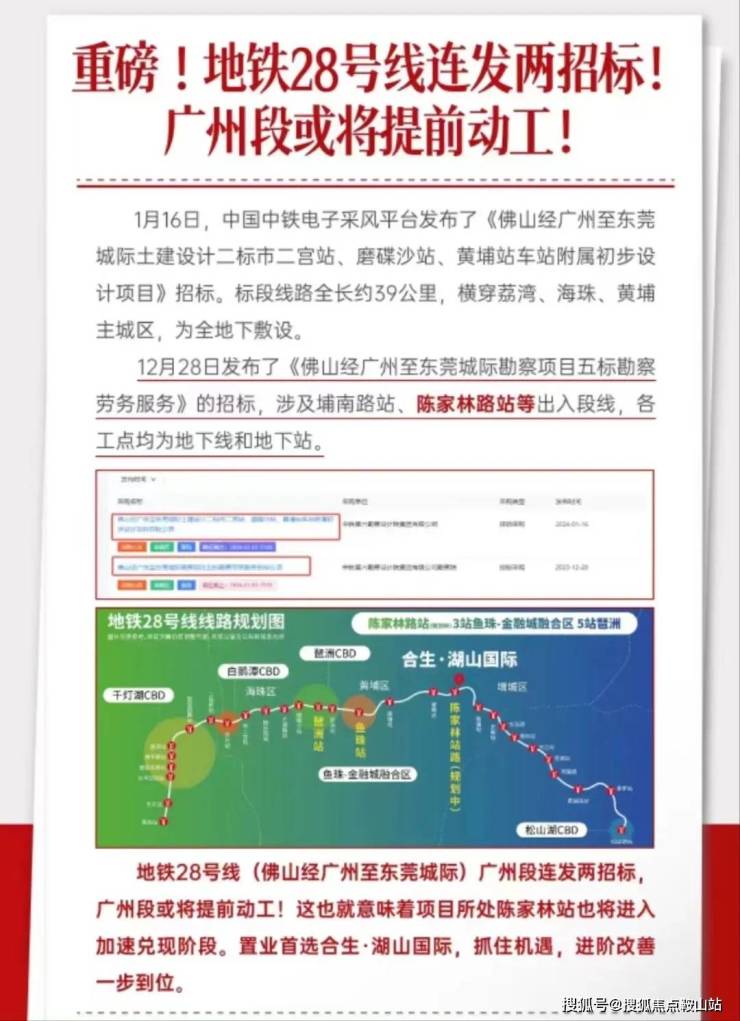 如果选择地铁出行,有规划中的28号线的陈家林路站,距离项目大概只有900米左右,目前规划站点在合生湖山国际那边,但还是存在一定的不确定性,地铁建好开通以后,坐地铁去天河、海珠、黄埔等区也非常方便。