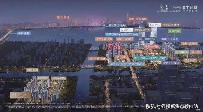 万科深业·湾中新城择址马鞍岛腹地,东部临海与深圳隔海相望。马鞍岛从交通、产业、城市建设等方面对标前海,承接深圳高端产业转移和资源外溢。