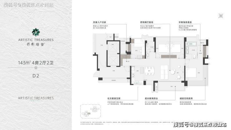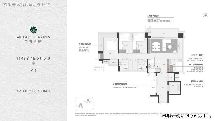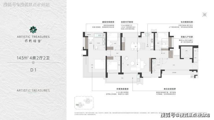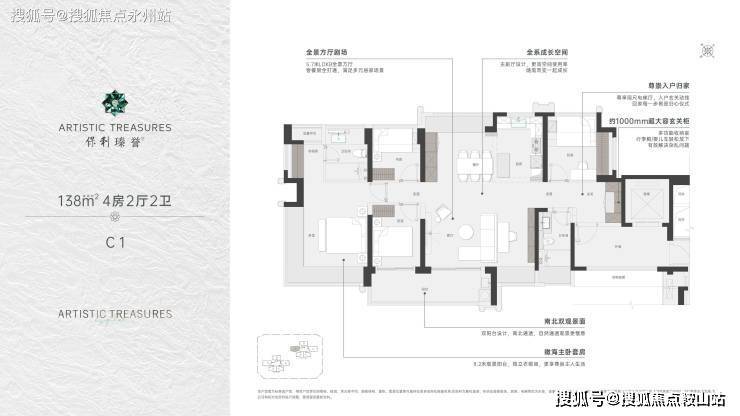 推出114-122-138-143㎡的4房户型,其中每户都有独立私家电梯厅赠送率都去到了100%左右。