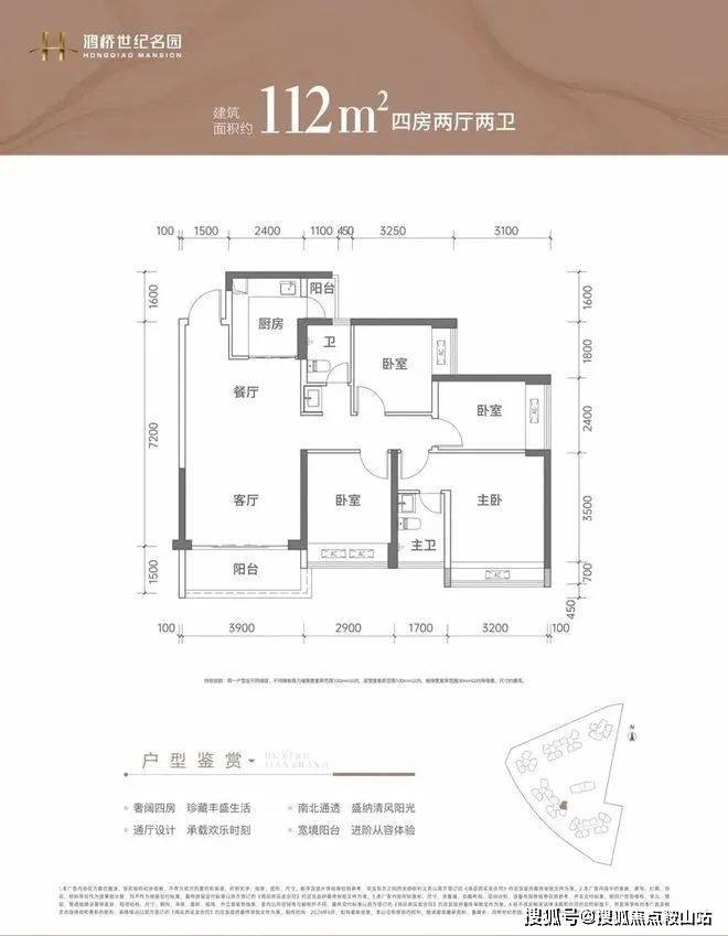 112㎡的4房2厅2卫:经典竖厅格局,客厅3.9米开间,LDKB一体化设计,4个卧室分别做到了3.2米/2.9米/2.55米/2.4米的宽度,L型厨房带1个小生活阳台,公卫三段式分离,东南朝向。✨✨鸿桥世纪名园开发商电话:400-859-7606【售楼处已认证】✨✽✽✽✽