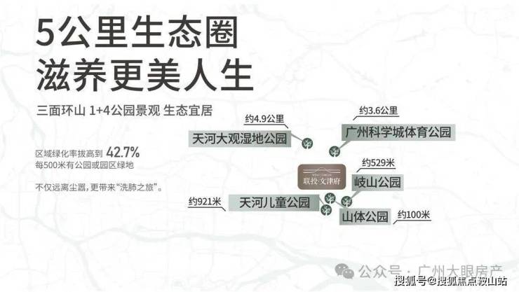 外揽“1+4公园”:山体公园、天河区儿童公园、岐山公园、天河大观湿地公园、广州科学城体育公园。