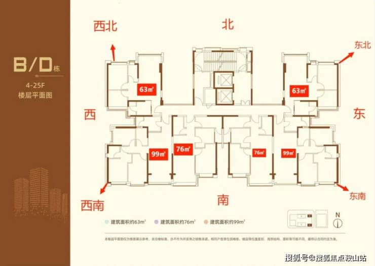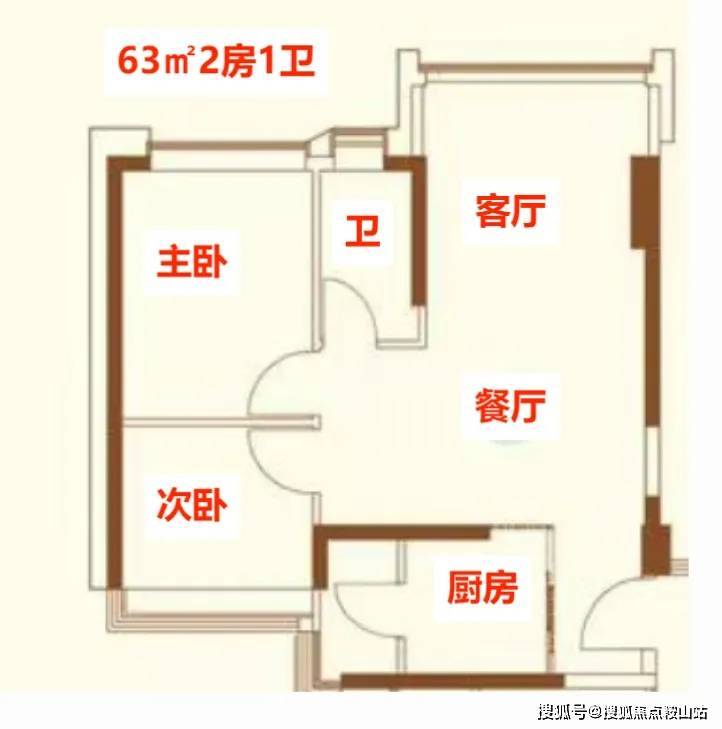 平层:63㎡2房1卫,73㎡2房1卫93㎡3房2卫