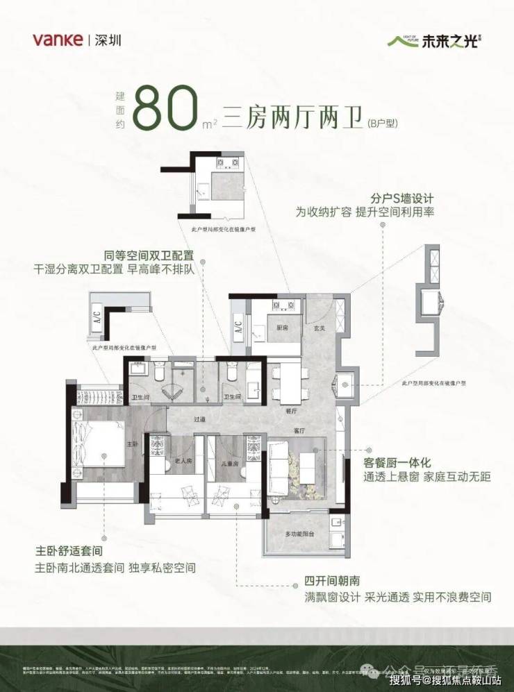 80㎡三房两卫【498-600万】全南无敌山景或南北通透