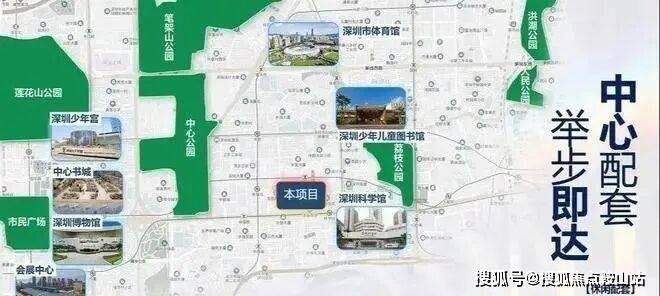 文体配套:深圳市体育馆,科学馆、少年宫、音乐厅、关山月美术馆、深圳博物馆、中心书城