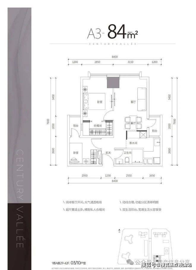 A3户型——建面约84㎡2房