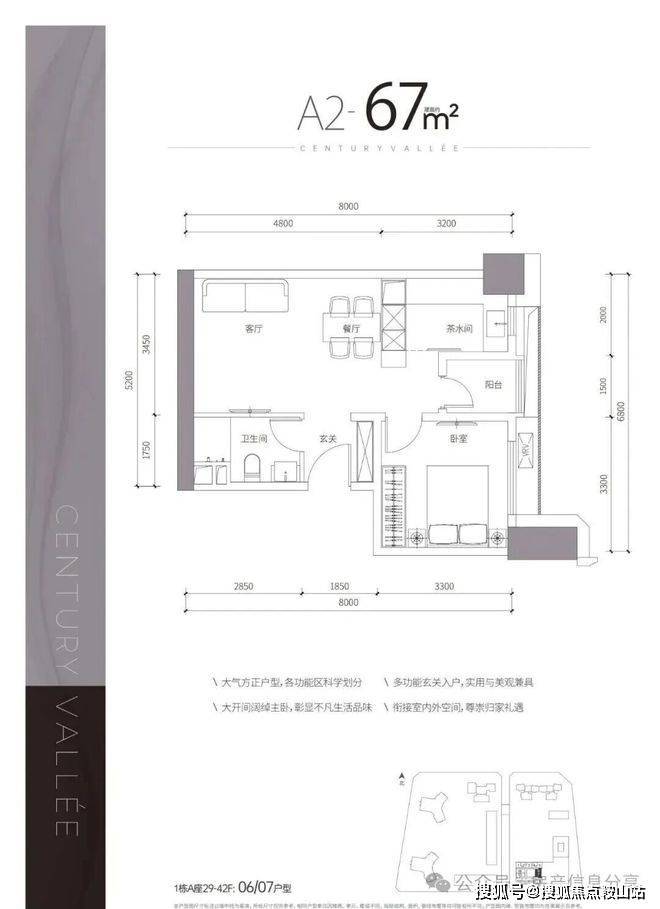 项目简介:总建筑面积约39万㎡,涵盖天际住宅、高端公寓、下沉式商业街等多种业态为一体,首推的1栋A座建面约67-87㎡天赋臻寓