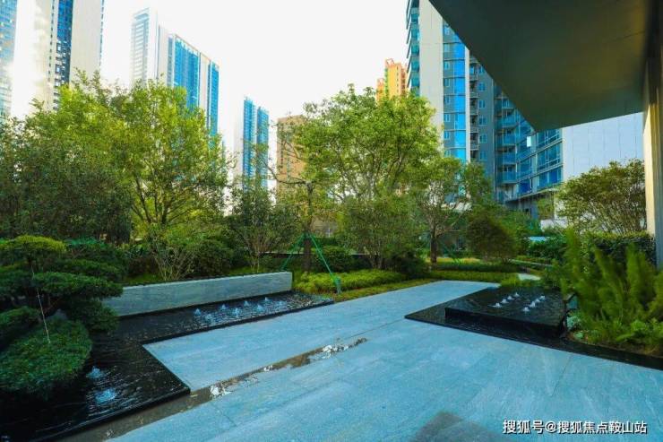 瀚府项目打造新中式园林景观,布置有罗汉松、小叶紫檀等名贵树种,配置各式枯山水小景,游乐、休憩、眺望平台步入园林之中,形成一种独特的移步异景的观赏动线,丰富业主未来的生活。