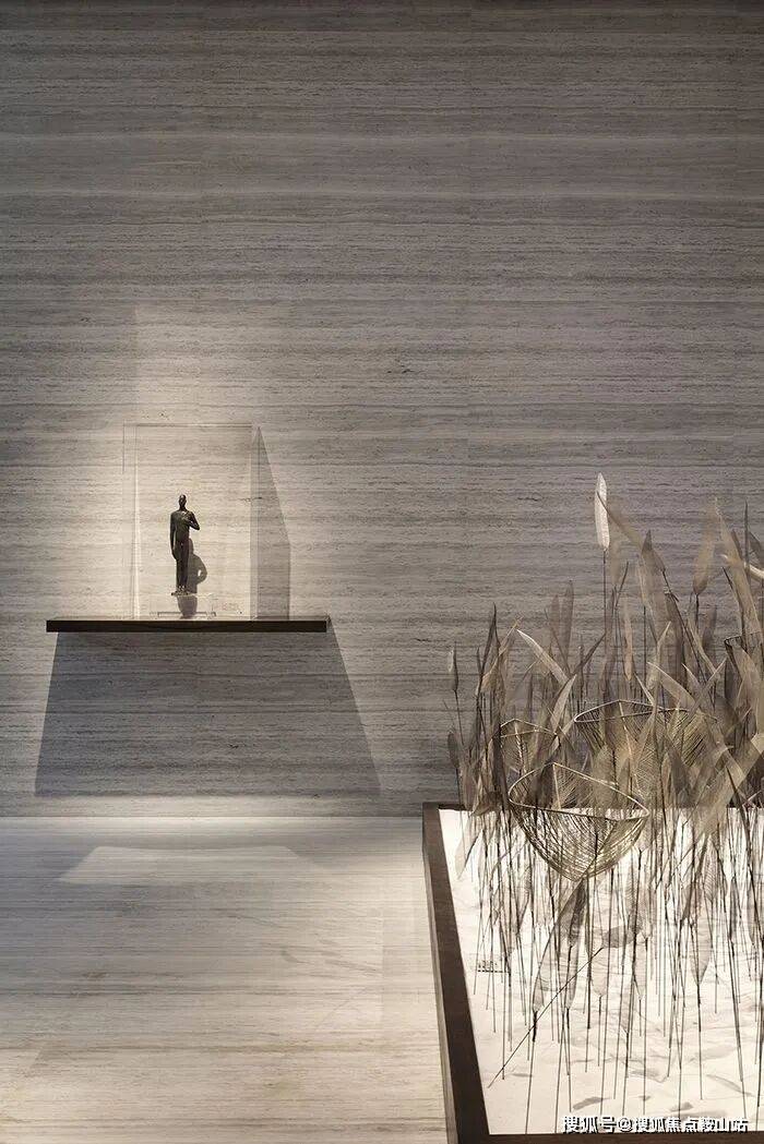 木纹大理石从墙面蔓延到地面,形塑风格,以空间的纯粹性凸显展区内容。