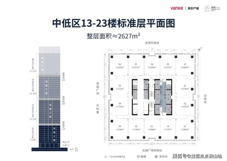 办公户型:168/172/176/272/220/224㎡灵活组合,整层约2627㎡