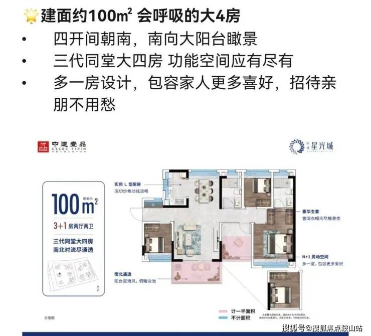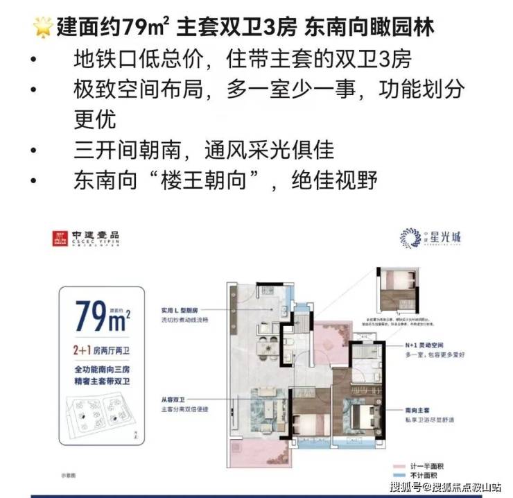 产品:项目总体南低北高,保证日照需求,蝶形设计,保证户户朝南,围合式布局,保证户户望园林。中建星光城分两期建设,目前在售69㎡-100㎡户型。