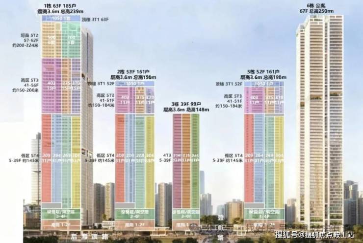 容积率7.59,限高250米,5栋超高层(1栋公寓+4栋住宅)。