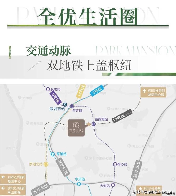【交通】百合世纪广场紧邻地铁5号线百鸽笼站(步行约100米),且未来规划有17号线罗岗站约450米在此交汇通过地铁5号线,1站可换乘3/14号线,4站直达福田核心区,7站快速通达深圳北站。1 公里接驳龙岗大道,2.5 公里直达丹平快速。