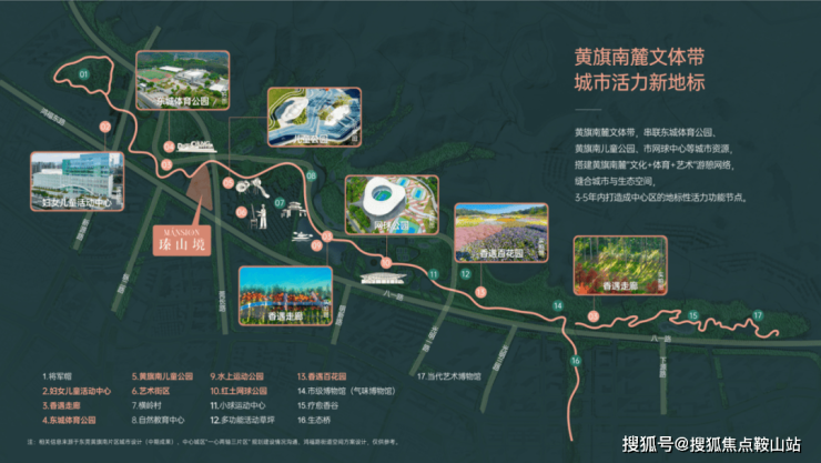 瑧山境为黄旗南麓文体带唯一住宅项目,通过廊桥实现与黄旗南文体带的无缝链接。