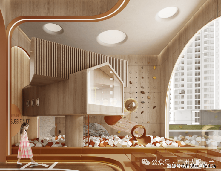 架空层结合景观及屋顶花园,设置城市会客厅、童趣梦岛主题乐园、知行书社、24小时便民自助区、自然课堂、棋牌室、休闲座椅区、儿童游乐区、健身区、泳池更衣淋浴室等高端配套泛会所。为业主带来便捷、品质的社区娱乐生活。