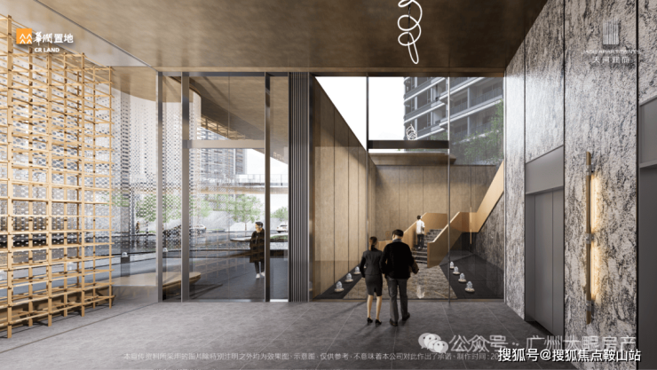 立面整体风格现代简洁、端庄典雅,选用低饱和度色彩,温润自然的材质,体现沉静含蓄的城市群像;以大面玻璃为底,突出水平线条的疏展,形成具有东方意蕴的立面秩序;结合岭南广府元素的现代演绎,在近人尺度体现细节品质。
