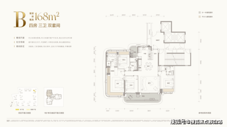 B户型 约168㎡四房三卫