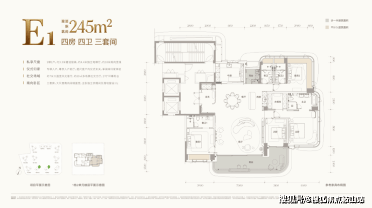 E户型 约245㎡四房四卫