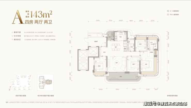 约143㎡四房两卫:总价约1800-1900万