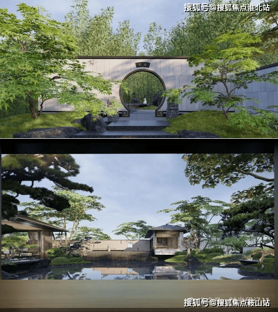 空间布局:一进山水院以叠石奇景、精巧花木为主,营造如居山中的归家体验;二进镜水院以水景、曲桥、角亭为主,展现中式生活特色园林空间。此外,项目园林还以环绕式连廊、点景亭台、曲桥竹径,将山水园境串联,一步一景。