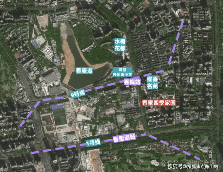 香蜜四季家园距离9号线香梅站和1号线香蜜湖站步行400多米,东侧是市民中心,南侧为深圳高尔夫俱乐部,距离香蜜湖直线约700米,位置十分不错。