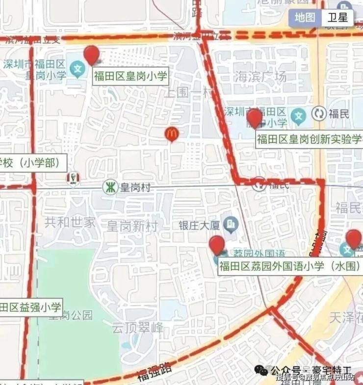 项目按2025年的学区划分来看,小学学区处于皇岗小学、荔园外国语小学(水围),中学学区处于皇岗创新实验学校(初中部)。