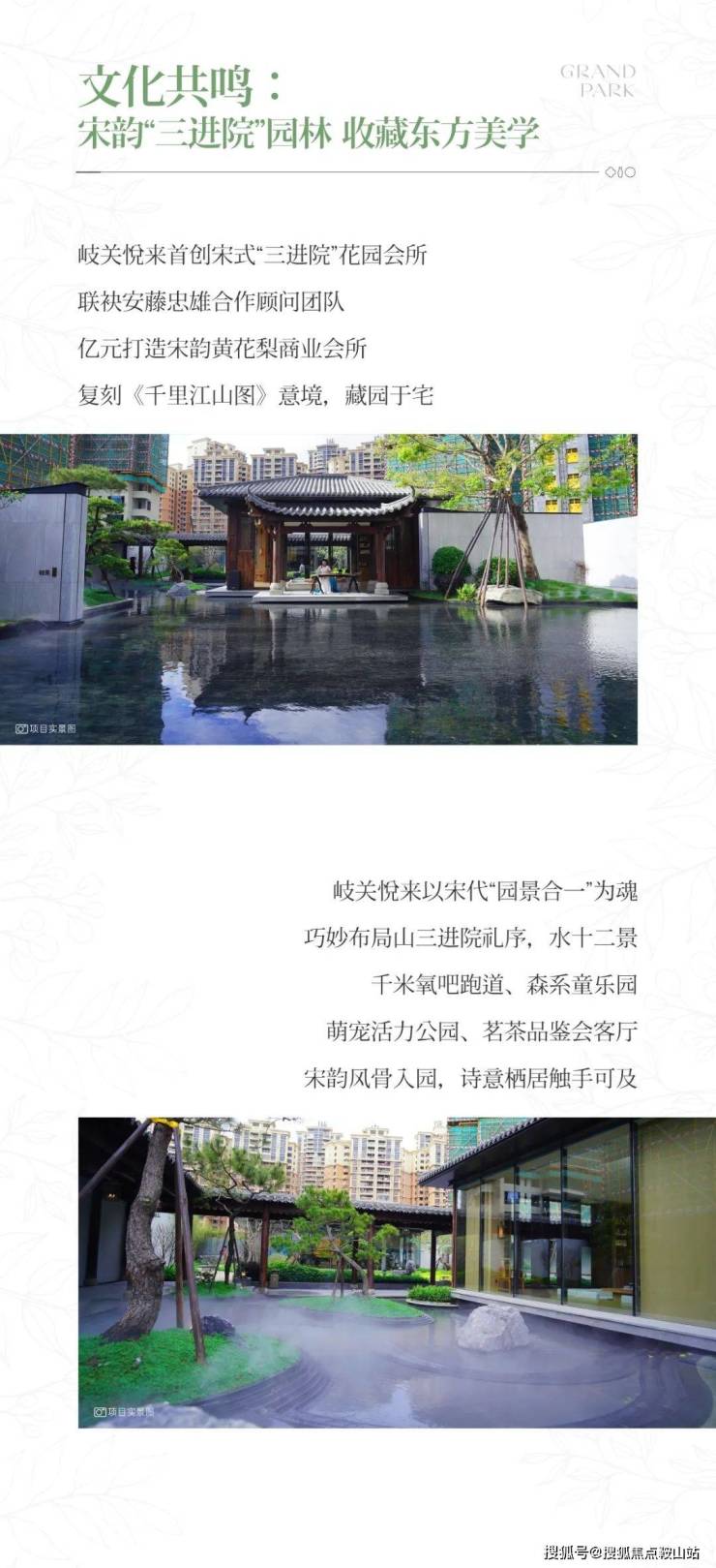 其中,项目斥资亿元,重金奢造的中山首个宋韵美学园林,以《千里江山图》为设计理念,呈现山水十二境,美轮美奂,堪称中山顶奢园林典范。