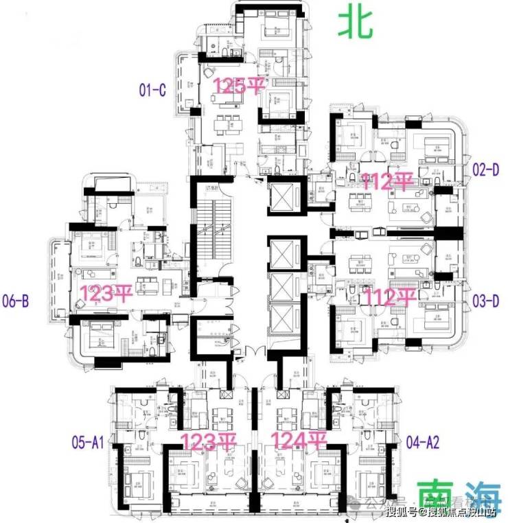 06 B户型——建面约122-124㎡3+1多功能空间 : 双龙抱珠户型,次卧带阳台。西北朝向看绿地公园及花园。虽然是125㎡户型中总价最低的,但仍保持高标准的空间尺度和配置,适合注重实用性的改善家庭,属于性价比之王。