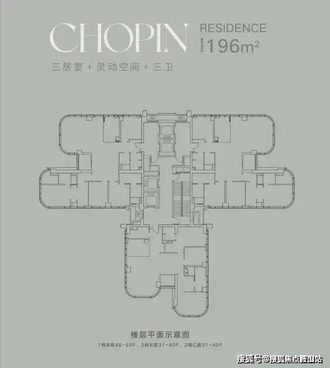 户型面积段设计为196-252-328㎡3-4房和400-600㎡顶层复式