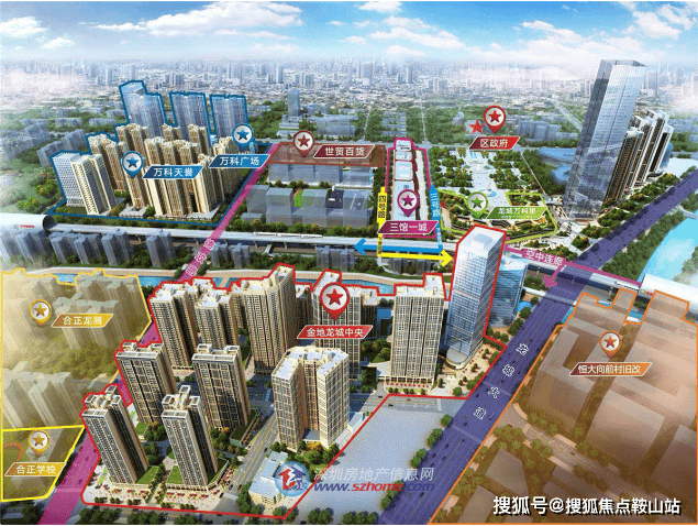 滨河中心区作为龙岗中心城重点开发区,合正、中信、中粮、恒大等品牌开发商联袂钜献超900万㎡城市综合体。金地龙城中央与东西两侧的合正龙腾旧改、恒大向前村旧改形成近300万㎡的高端互联商住圈,于重心之上再造盛势。