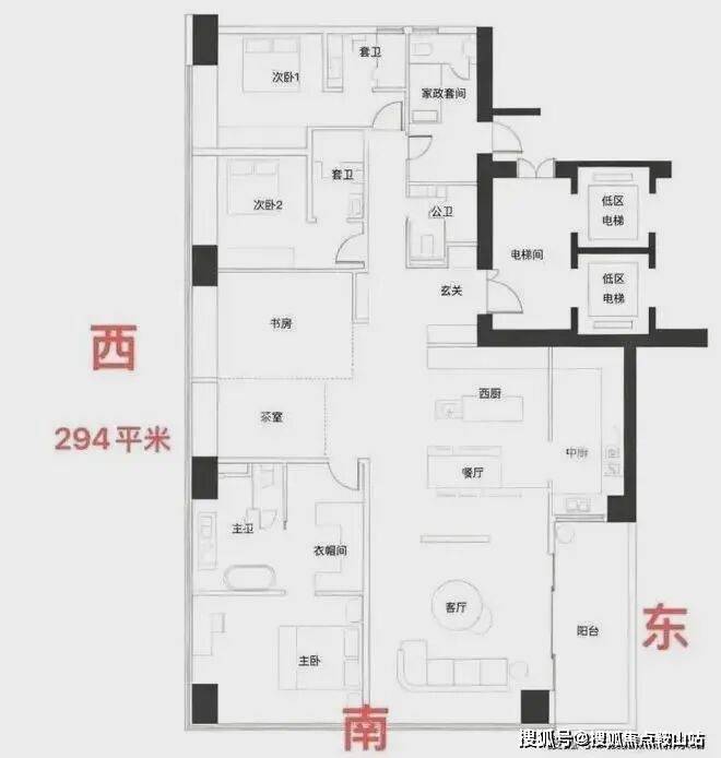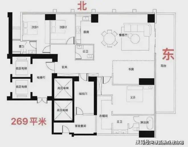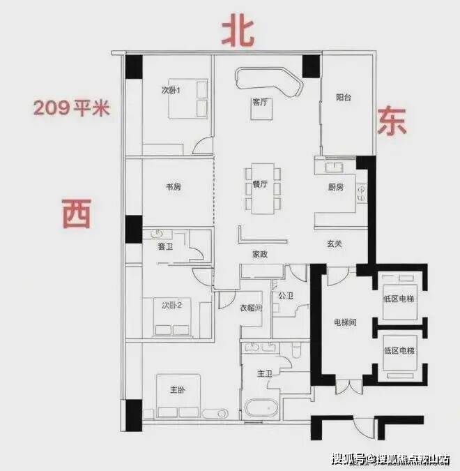 约209㎡四房三卫+家政是北区起步户型,