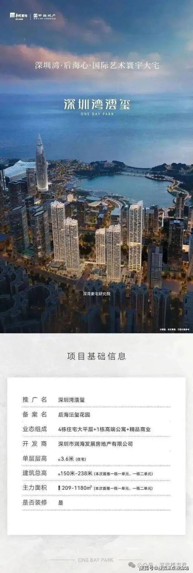 深圳湾澐玺花园位于南山区粤海街道逸湖二街与后海滨路交汇处,占地3.85万㎡,总建面26.3万㎡,涵盖住宅(17.7万㎡)、商务公寓(7万㎡)、商业(1万㎡)及幼儿园等公配。