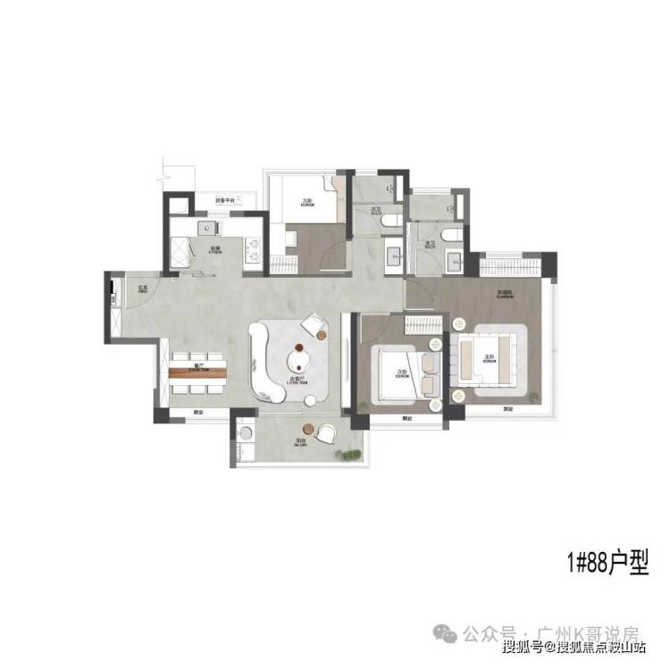 LDKG一体化大空间,无承重墙设计,可伴随家庭周期成长改造,家人共融,宴请宾客,足够阔绰。