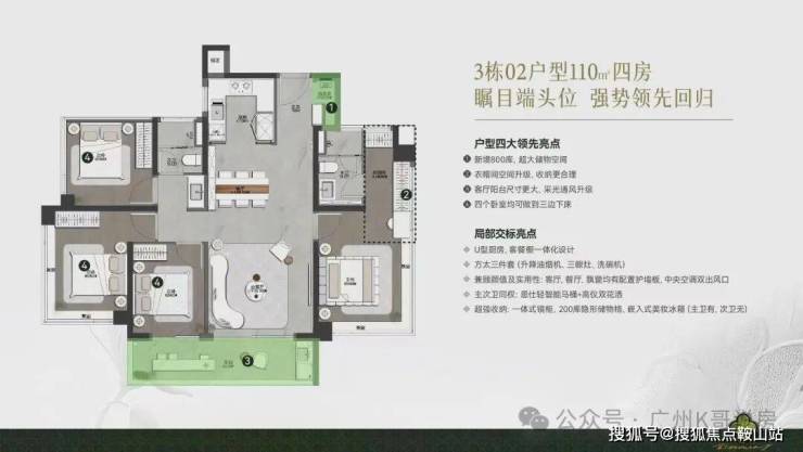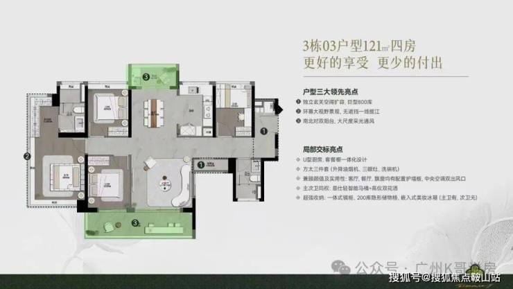同样是南北对流的四房户型,做到了4.5开间朝南。