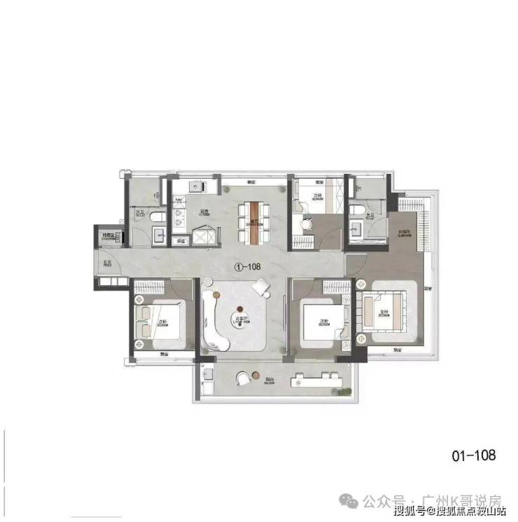 南北对流双阳台的户型,超宽阳台和超宽客厅,尺度感很强。