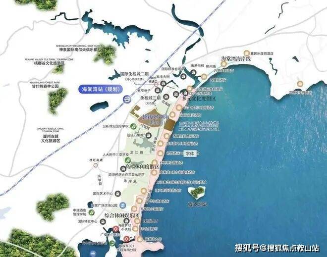 ◎通达交通属性——距离海岸线约 2 公里,距离海南环岛高速路约 4 公里,通往高铁站及机场都十分便利,未来还规划了海棠湾高铁站,建成后出行更加便利。