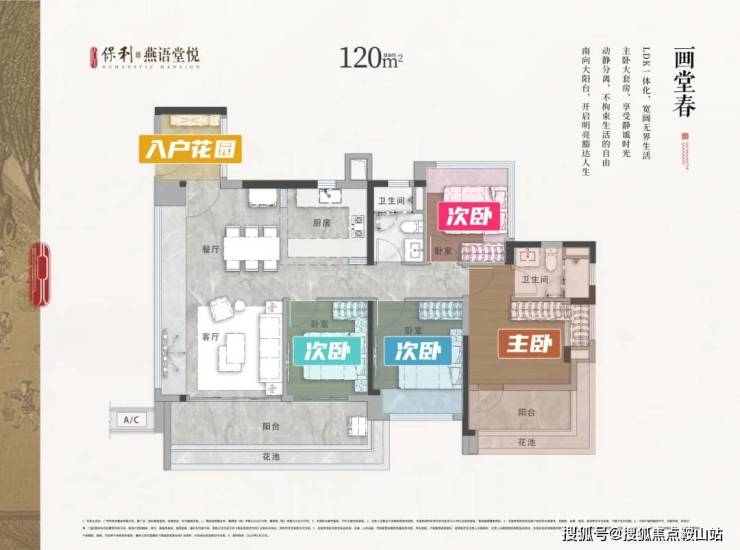 而竖厅不必多说,是较为传统的动静分区设计,客厅次卧也是灵活设计。