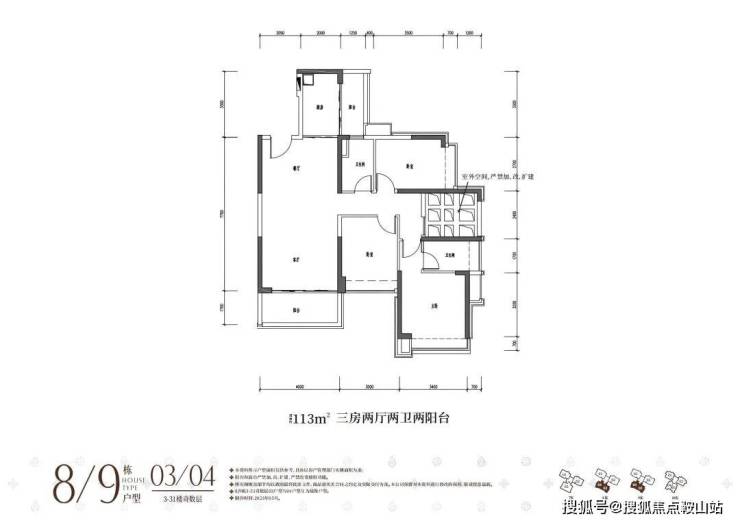 空间革命:两梯三户低密配置,全南向户型搭载多阳台露台,拓展率达90%以上
